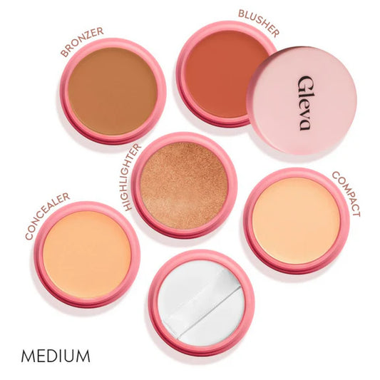 Gleva 5 In 1 Makeup stack Gleva 5 In 1 Makeup stack WIth Concealer, Bronzer, Blusher, Compact & Highlighter Smooth & Blendable Formula - Medium - 25 gm