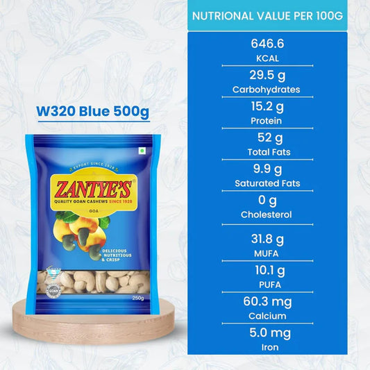 Zantye's Goan Cashew W320 Premium Kaju - 500 gm