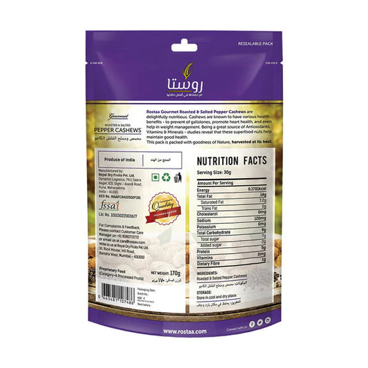 Rostaa Roasted & Salted Pepper Cashews - 170 gm