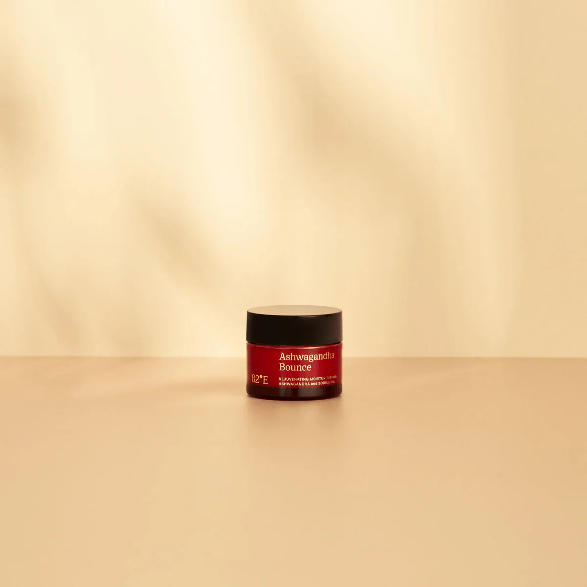 - Hydrate: Ashwagandha Bounce is a rich yet lightweight moisturizer packed with the refreshing goodness of ashwagandha and sodium hyaluronate. This rejuvenating moisturizer is clinically proven to hydrate and restore your skin to a glowing and naturally healthy state.