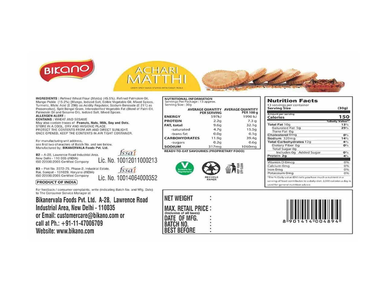 A combination of assorted mathis like Gol mathi (400 gm), Methi mathi (400 gm), and Achari mathi (500 gm). A perfect combo of tea-time snacks