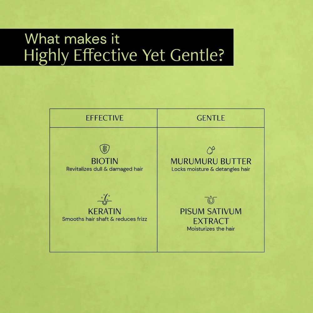 - Deconstruct Nourishing hair conditioner is a Biotin + Keratin conditioner that contains the goodness of Biotin, a vitamin, and Keratin, a protein that significantly supports hair health by nourishing and strengthening the hair. Conditioner enriched with murumuru butter, provides deep moisture to the hair and maintains hydration. It also helps smooth dry and frizzy hair and adds shine to it.