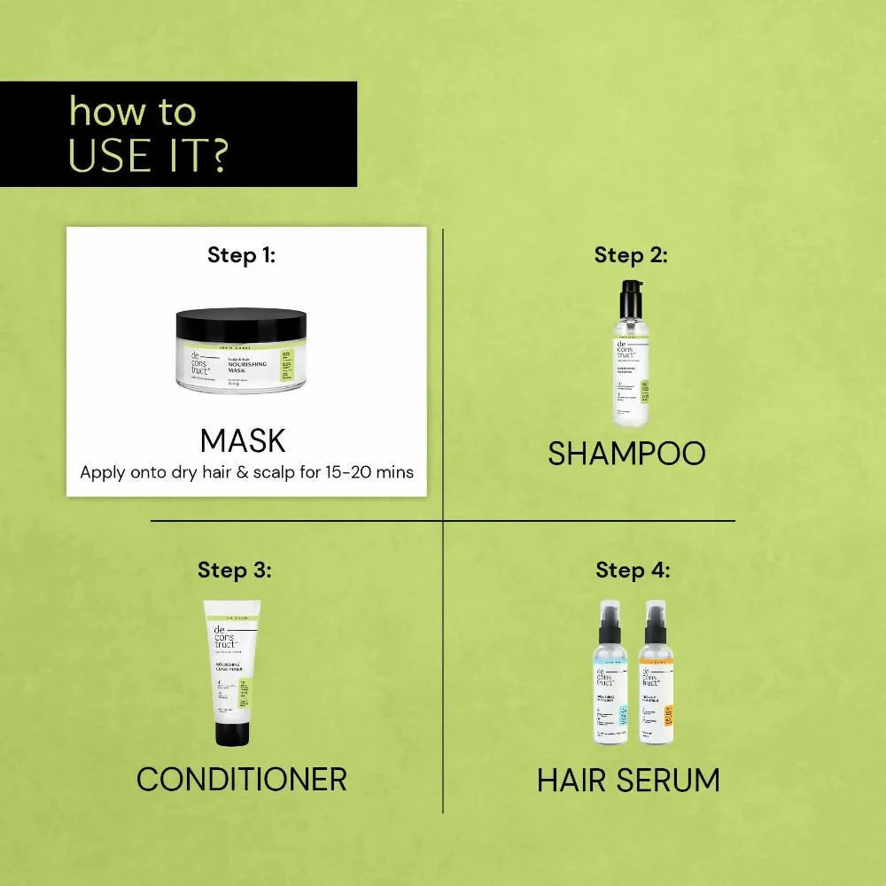 - Leave it on for 15-20 minutes & wash it off with a Deconstruct's Nourishing Shampoo