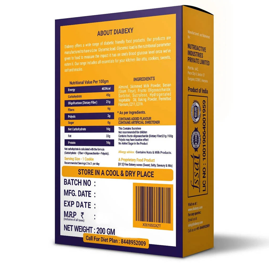 Almond, Milk Powder, Besan, Fructooligosaccharide Sucralose, Hydrogenated Vegetable Oil, Baking Soda,Baking Powder, Permitted Flavours, E211, E319.