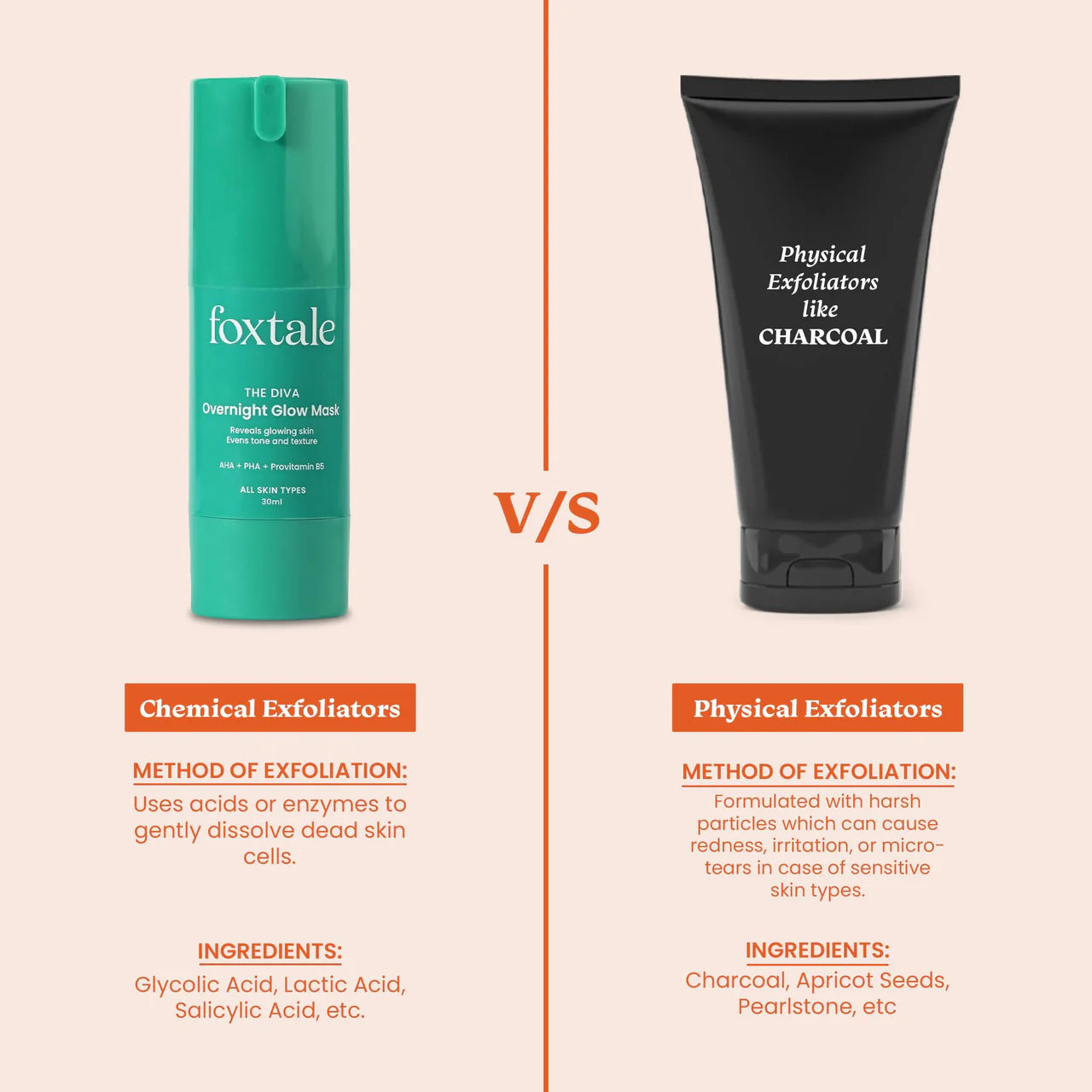 Foxtale Over Night Glow Mask For Glowing Skin, 4% Glycolic Acid & 3% Lactic Acid, Reduces Blackheads and Whiteheads