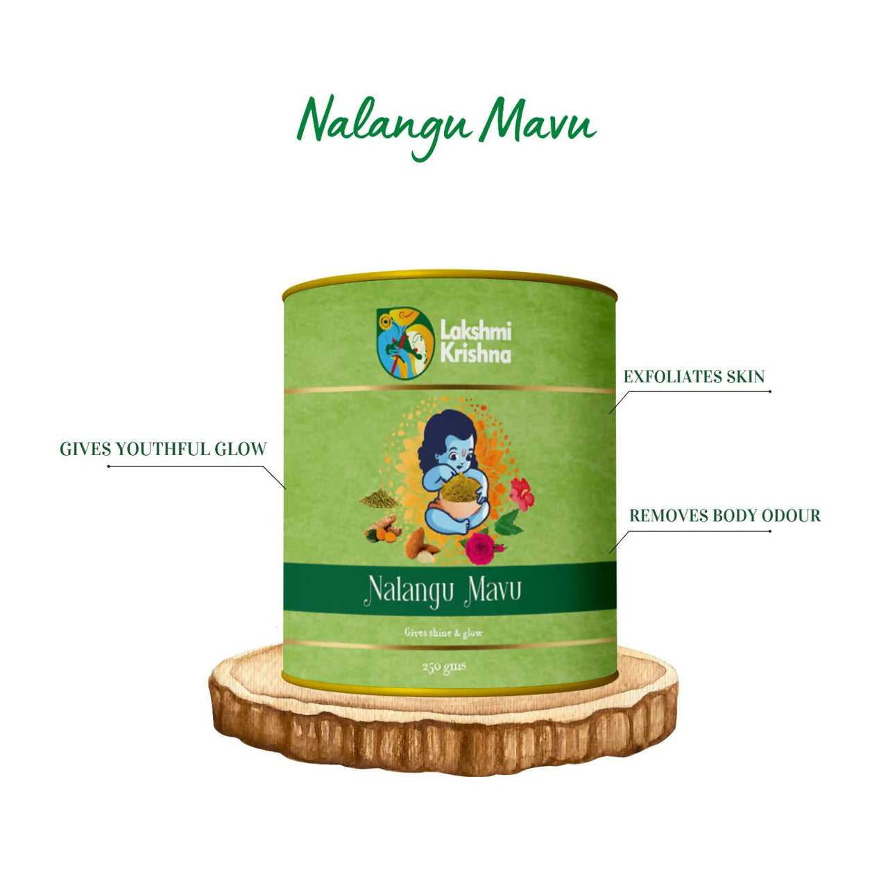 - Lakshmi Krishna Naturals Nalangu Maavu Bath Powder is a lifesaver for those suffering from acne, dryness, irritation, aging, and fine lines.