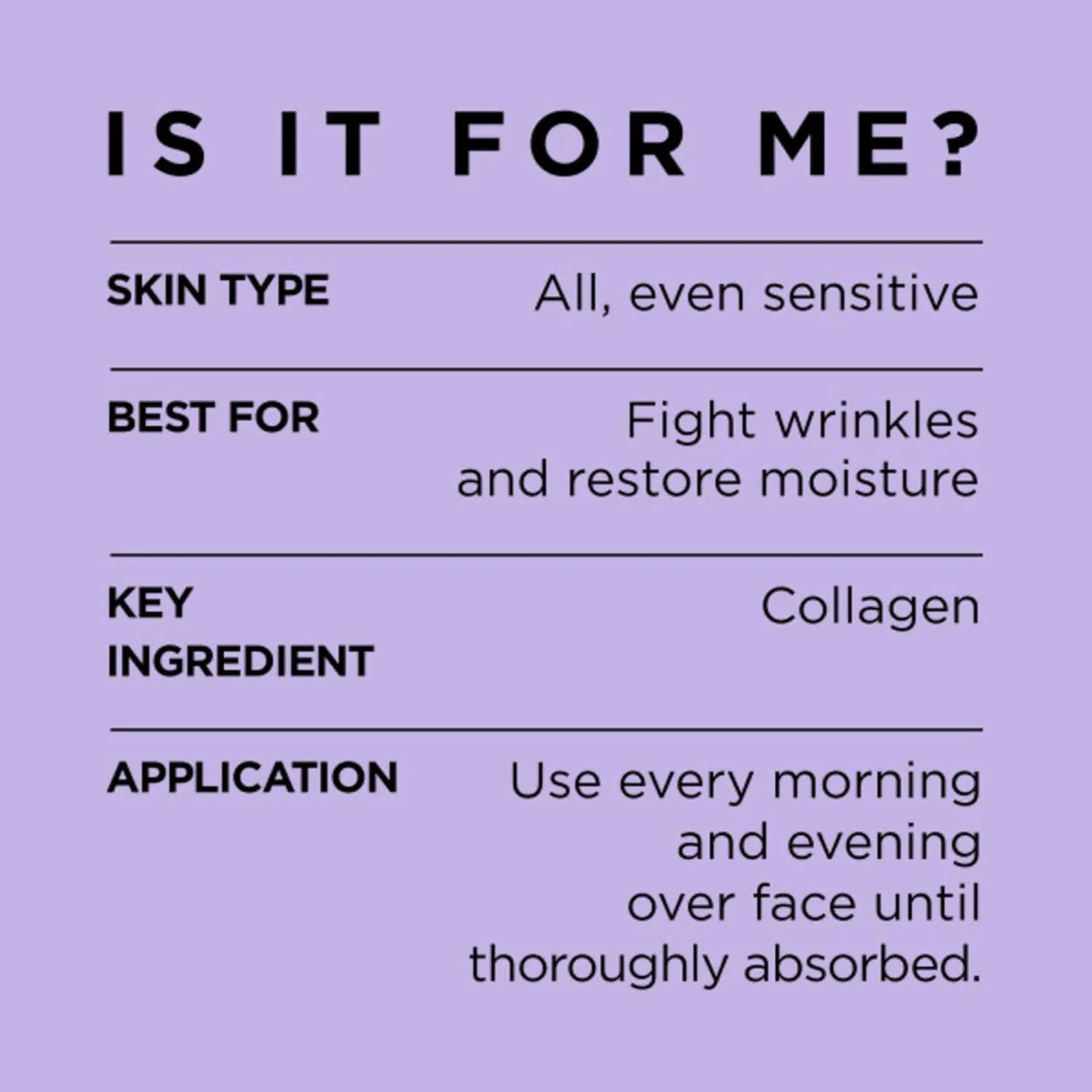 - A Dose Of Intense Hydration And Natural Collagen In Collagen Filler Moisture Day Lotion And Day/Night Cream Is Essential For Younger-Looking Skin. Rich Moisture Instantly Restores Skin'S Cushion And Bounce. Over Time, The Powerful Natural Collagen Helps Fill In Lines And Wrinkles, Leaving Your Skin Smooth And Plump. In Just 4 Weeks, 78% Of Women Reported Seeing Their Wrinkles Filled In. Use It For A Complete Collagen-Infused Skincare Regimen.
