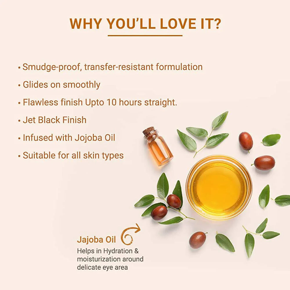 - It is 10 Hours + Stay, Smudge-proof, Waterproof Kajal, free of Paraffin, Animal Oil, and Preservatives, and suitable for Waterline. It has a Velvety soft texture, Excellent Color Pay-off, and is suitable for those who wear Contact lenses. 100% Vegetarian, Free of Animal Ingredient.