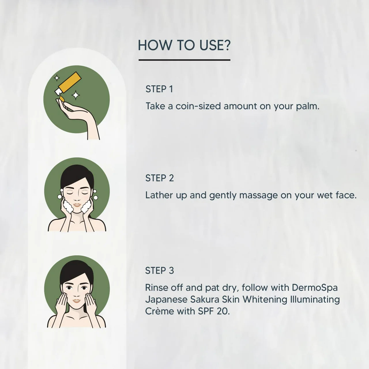- dermoSpa Japanese Sakura Skin Whitening Face Wash is infused with potent organic ingredients native of Japan that deeply cleanse the. Skin and prevent melanin production. Japanese Sakura & White mulberry extracts provide a unique potent formula that enhances skin whitening & lightning.