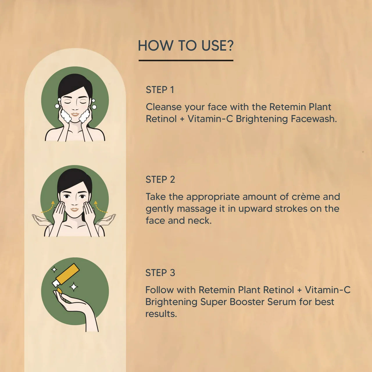 - Enriched with Vitamin-C and Bakuchiol botanical extracts (Plant Retinol), this Cre?me helps to increase skin clarity and radiance. It hydrates, nourishes and tones the skin and minimizes environmental damage and helps to maintain your naturally glowing and younger-looking complexion. It also quenches your skin with hydration the appearance of your skin and giving it a radiant boost.
