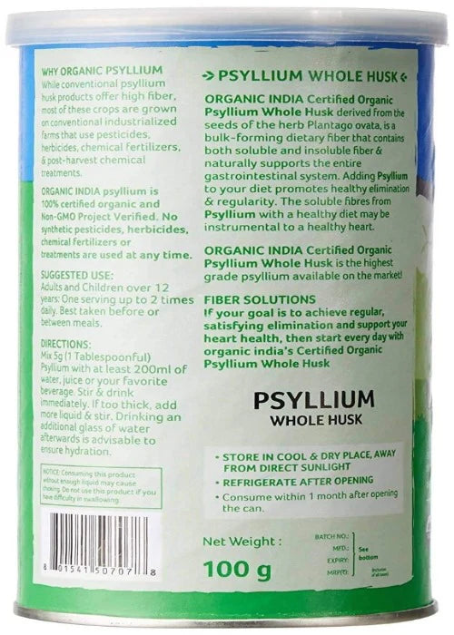 Organic India Psyllium Whole Husk 100 gm: