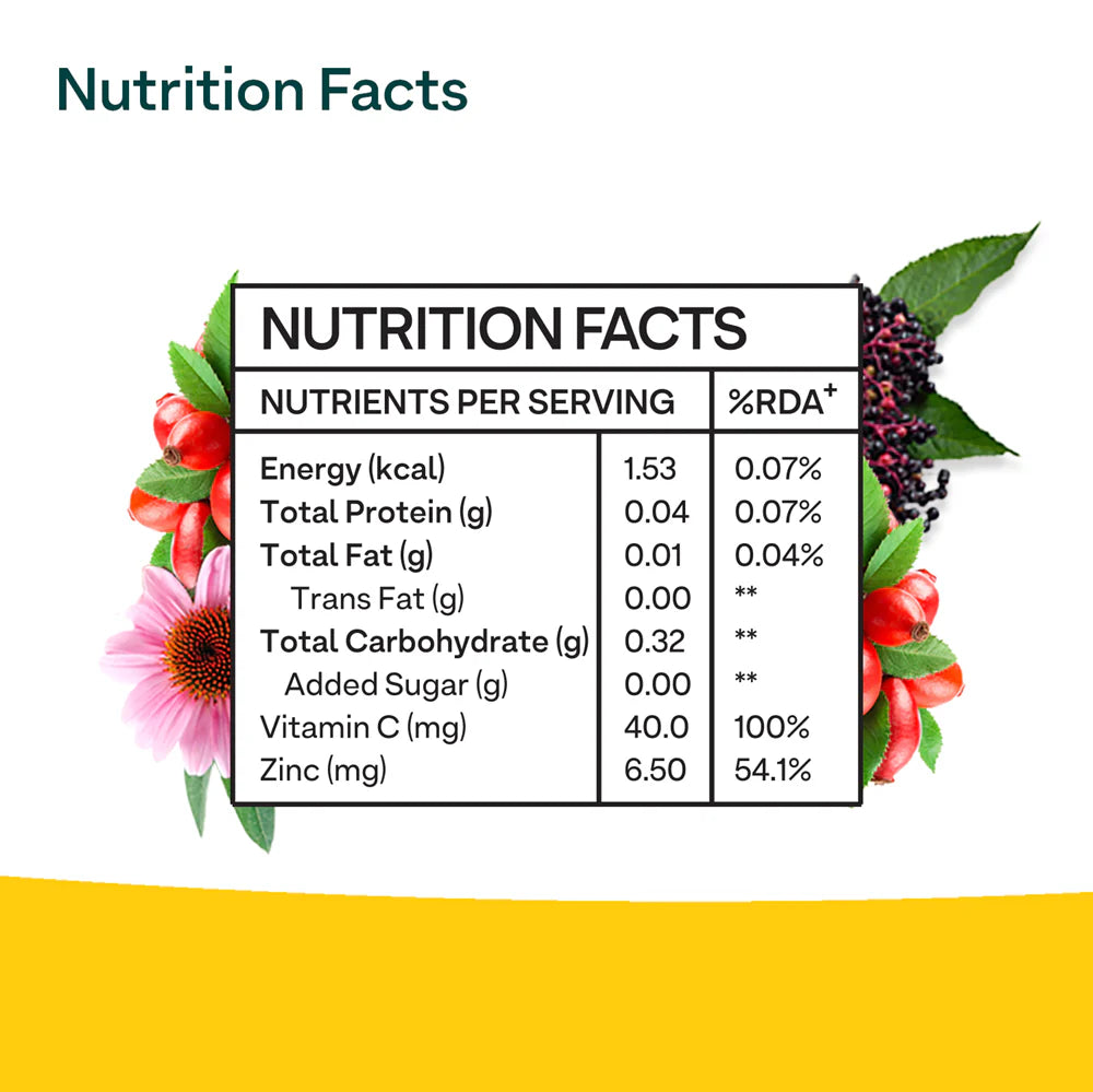 - Provides 40 mg of plant-based Vitamin C derived from RAAZen-C (a standardized plant extract for Vitamin C) and 6.5 mg plant-based Zinc derived from GZen-Zinc (a standardized plant extract for Zinc).