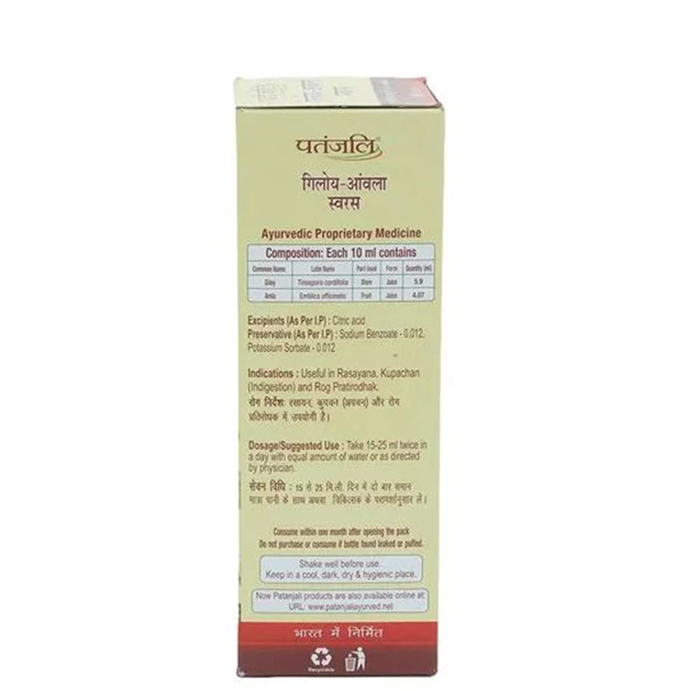 Patanjali giloy amla juice is an all natural food product. This juice is made with