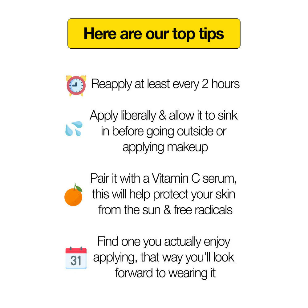 - Apply liberally and evenly on face and exposed parts of the body 20 minutes before the sun exposure.