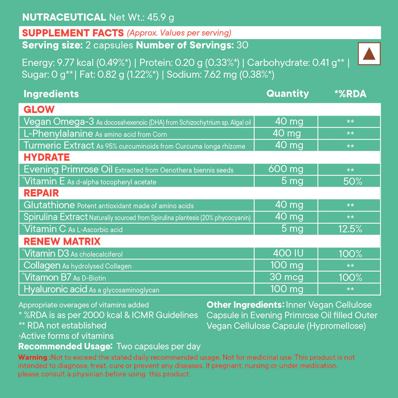 - A scientifically-developed supplement to carefully repair and renew. These capsules combine the most powerful neuroscience with fast-absorbing evening primrose oil and slow-release beadlets with collagen, glutathione, and biotin.