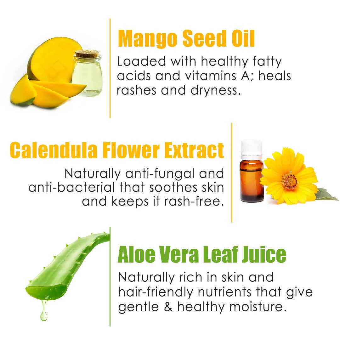 All-in-one Shampoo, Conditioner & Body Wash for kids (age 3+). An amazing product formulated especially for kids that you can actually use three ways. Its marvellous mango fragrance is so amazing that it makes bath time a fun hour for your child. It makes your child's skin super soft and hair super silky. Ultra-moisturizing, rich and foaming lather that makes bathing so much fun, and leaves your child smelling so angelically good.